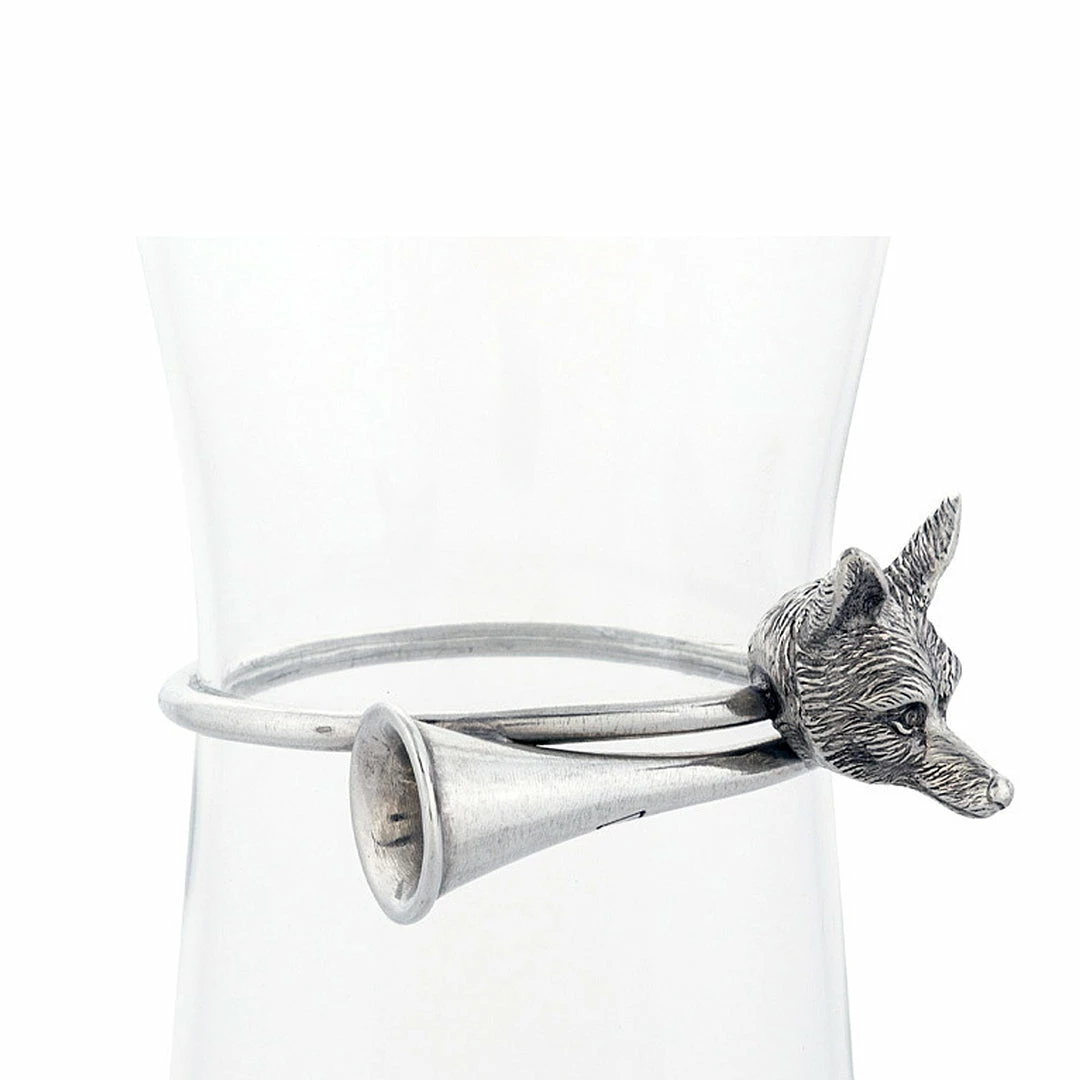 Use this sleek Hunt Horn wine carafe to serve wine to your dinner guests. The 10-inch-tall glass vessel is designed in an open carafe style with a lip for easy pouring and a wide mouth for proper aeration, achieving the full flavor of your favorite fine wines. A popular beverage server for animal enthusiasts, this wine carafe has a collar crafted from pure pewter featuring the face of a fox and accented with nature-inspired branch flourishes. This woodland-themed carafe holds up to 28 ounces of liquid, or the contents of a standard bottle of wine. Enjoy serving other beverages from this elegant pitcher too. Chilled water and colorful juices poured from this Hunt Horn wine carafe make a delightful addition to your table setting or buffet spread.