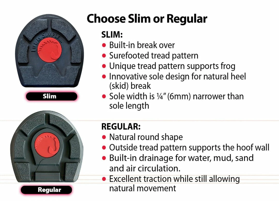 Cavalloโs Trek Regular Sole Hoof Boot is the most flexible, durable, breathable and user friendlyย addition to the Cavallo hoof boot collection. Shaped for the rounder hoof, Trek Regular sole Hoof Boots, with their honeycomb design, maximize strength andย minimize weight for the comfortable performance your horse deserves.ย Great for the reliefย of chronic pain or hoof sensitivity; rehabilitation from injuries, abscesses, navicular disease, laminitis / founder, punctures, sole bruising and contracted heels. Additionally, the Trek Hoof Boot can easily be adjusted for close contact and snug fit to individual horseโs hooves. ย Can be used for protection during trailering and breeding or taken on the trail as a โspare tireโ for lost shoes.