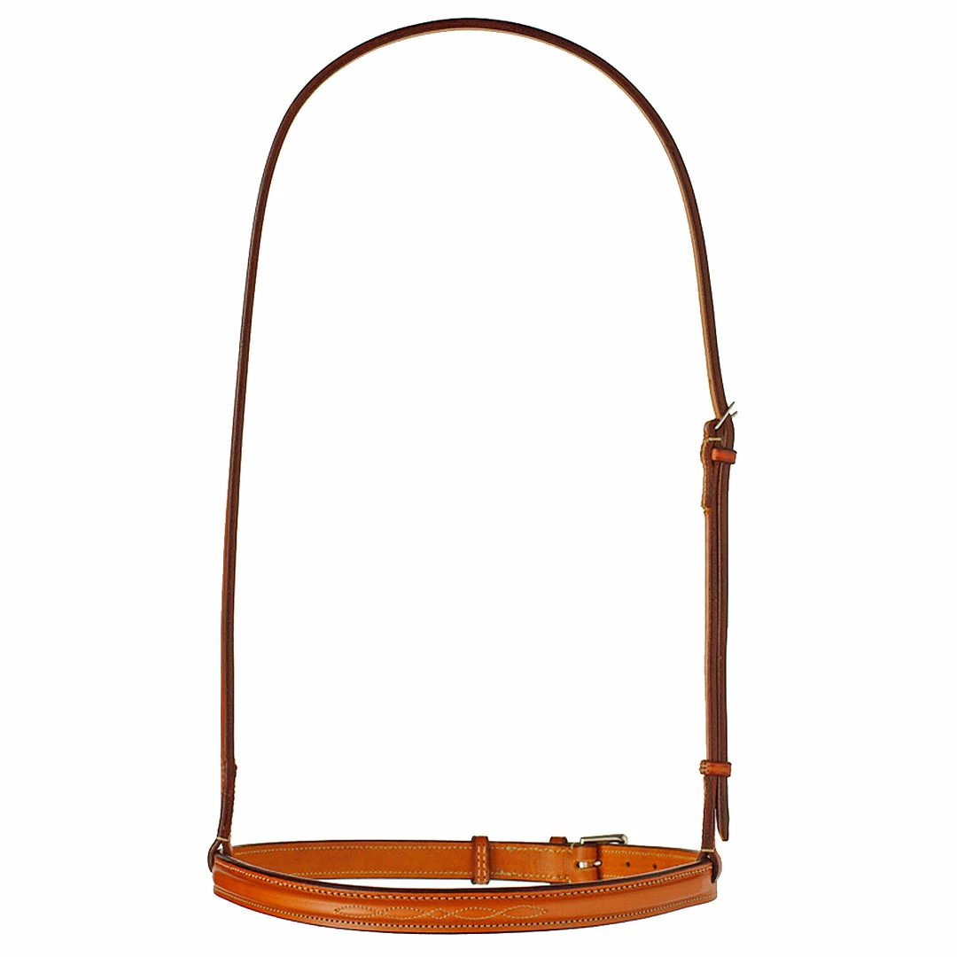Chain Nosebands:Β The chain on the backside of this training noseband is a high-grade, stainless steel link chain that is hand-stitched into place for extra strength and durability.Β Fine hand- and machine-stitching, handcrafted square-corner keepers, and stainless steel hardware complement this Edgewood Noseband. Features comfortable padding and fancy stitching across the nose. Made with a ‘soft’ edge brass tack.