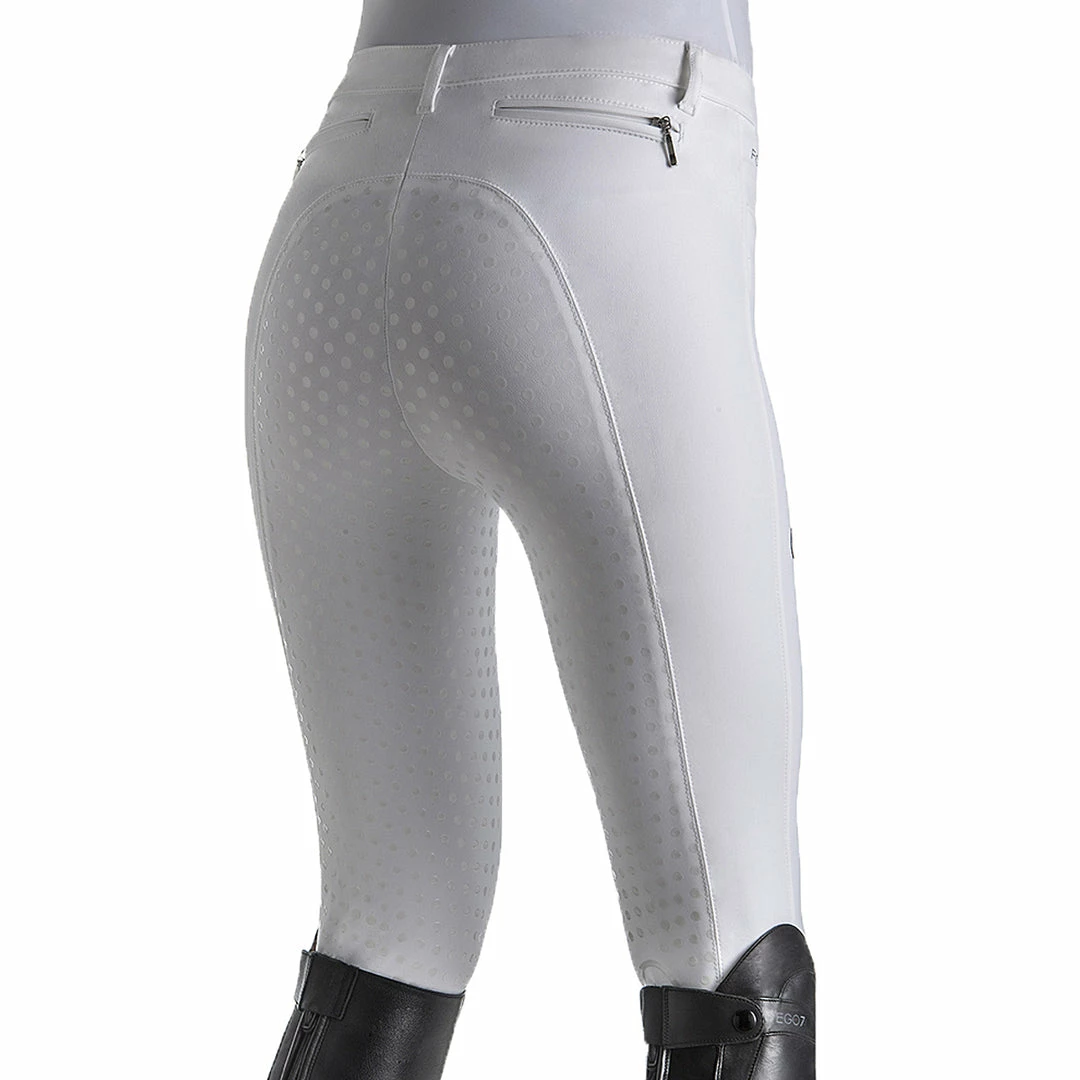 Ego 7 Dressage FG breeches are high-waist with flattering front pockets and zip detail on the back; superior performance and style are guaranteed thanks to the signature cut developed by Italian designers and the use of the best technical materials for sports. The revolutionary fabric, 100% jersey made in Italy, ensures a perfect fit with four-way stretch for unrestricted movement, support, and shape retention.Β Comfortable, breathable, and with better contact with the horse while riding. A modified high waist sits fashionably high in front and rises in back for complete coverage. EGO7 breeches feature a new patented COBRAX button and the innovative full seat grip for exceptional sticking power to allow stability in the saddle and on the interior of the waistband to prevent shirts from untucking. These are perfect for both competition or daily training, particularly suitable for dressage. Machine wash.
