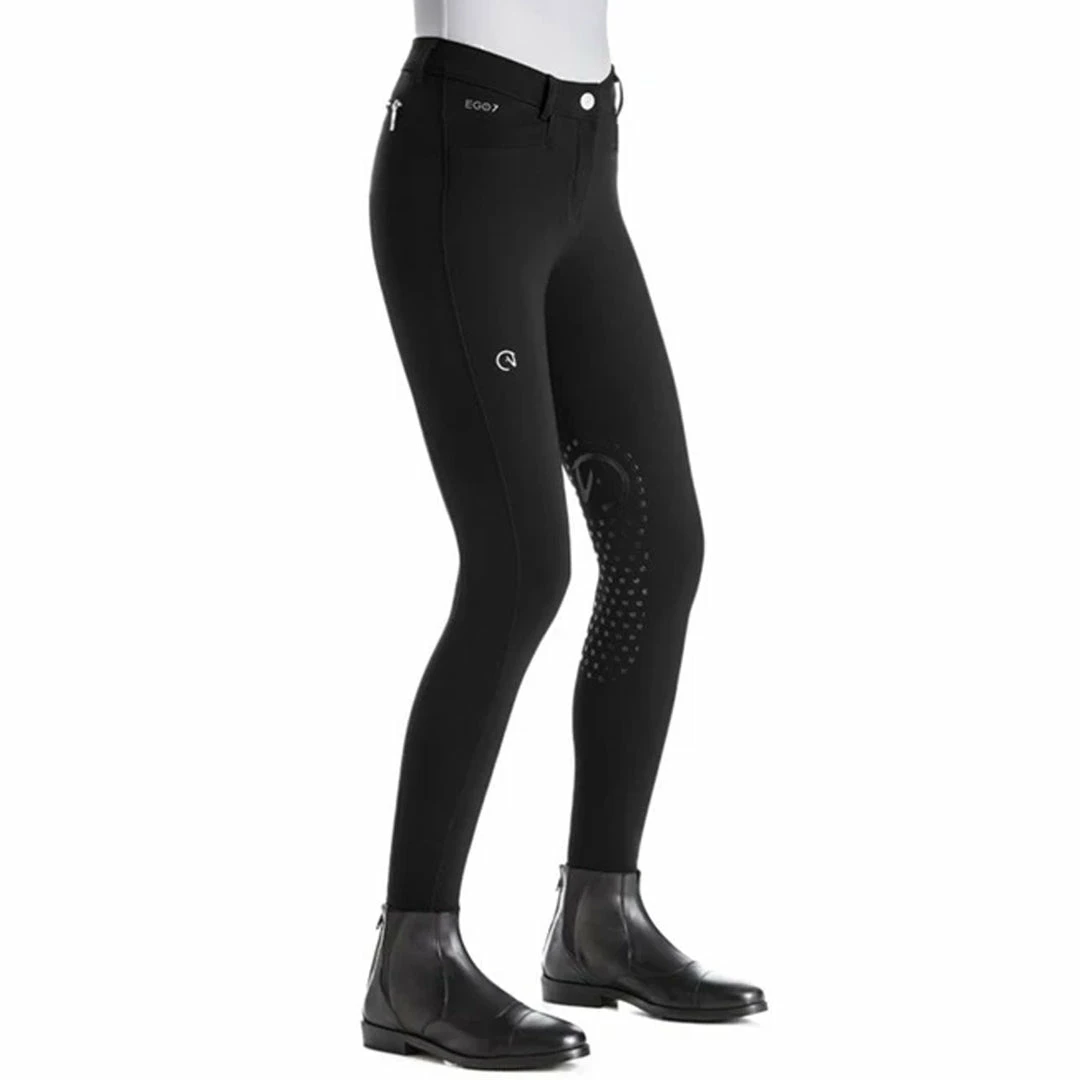 The Ego 7 style with flattering front pockets and faux zip detailing on the back gives them a fantastic look. Superior performance and style are guaranteed thanks to the signature cut and design that Italian designers developed.Β The revolutionary fabric, 100% jersey made in Italy, creates a perfect fit while the 4-way stretch fabric ensures unrestricted movement, support, and shape retention to give you never before felt comfort.Β Highly breathable, the breeches offer increased contact with the horse while riding.Β
