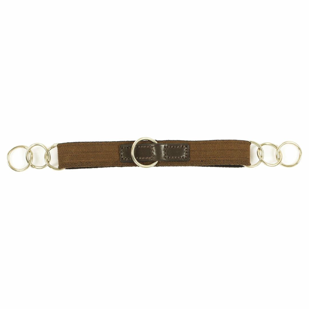 Elastic curb strap with chain ends and center ring.