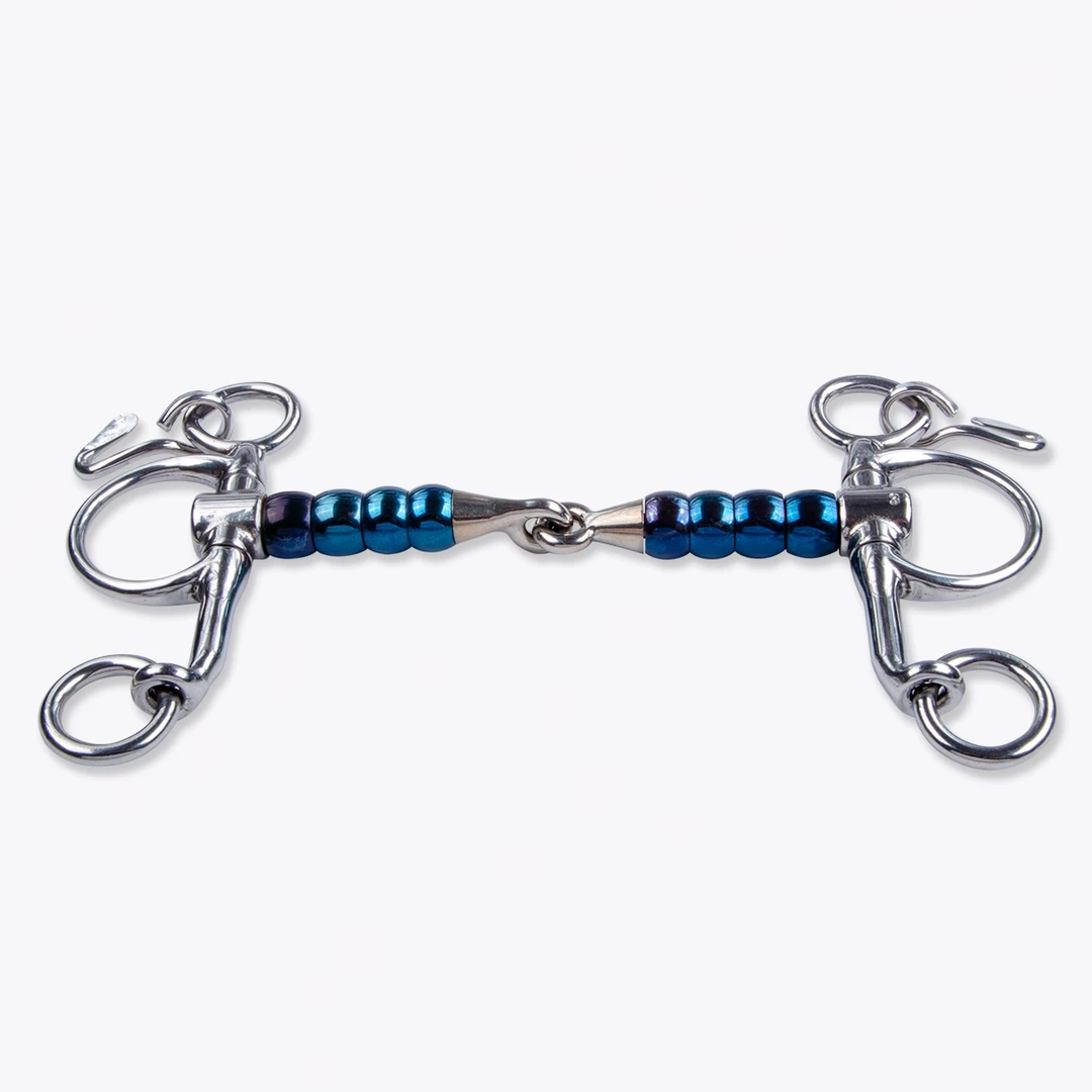 We love this bit because the unique cherry roller mouthpiece really helps promote relaxation in anxious horses. The rollers can move in the horse’s mouth so also help horses that like to play with their bit.