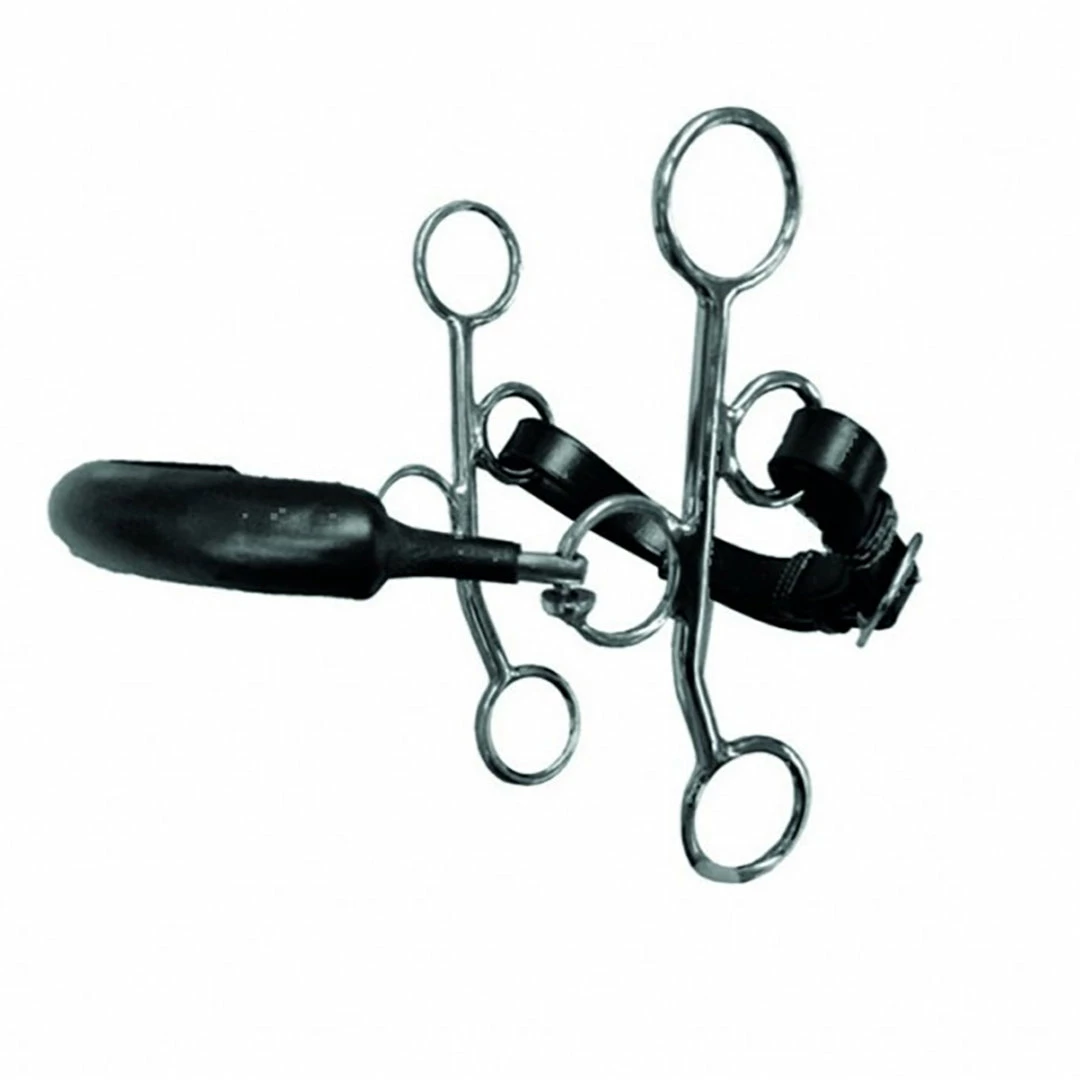Hackamore with aΒ rubber coatedΒ noseband, stainless steel cheeks and leather curb chain. The Hackamore has a lever action on the bridge of the nose and the mandibles only. It will not have any action on the inside of the mouth. It it greatΒ for horses that don’t tolerateΒ bit contact in their mouth, for those that fight the rider’s hand or for those that can’t be ridden with a mouthpiece.