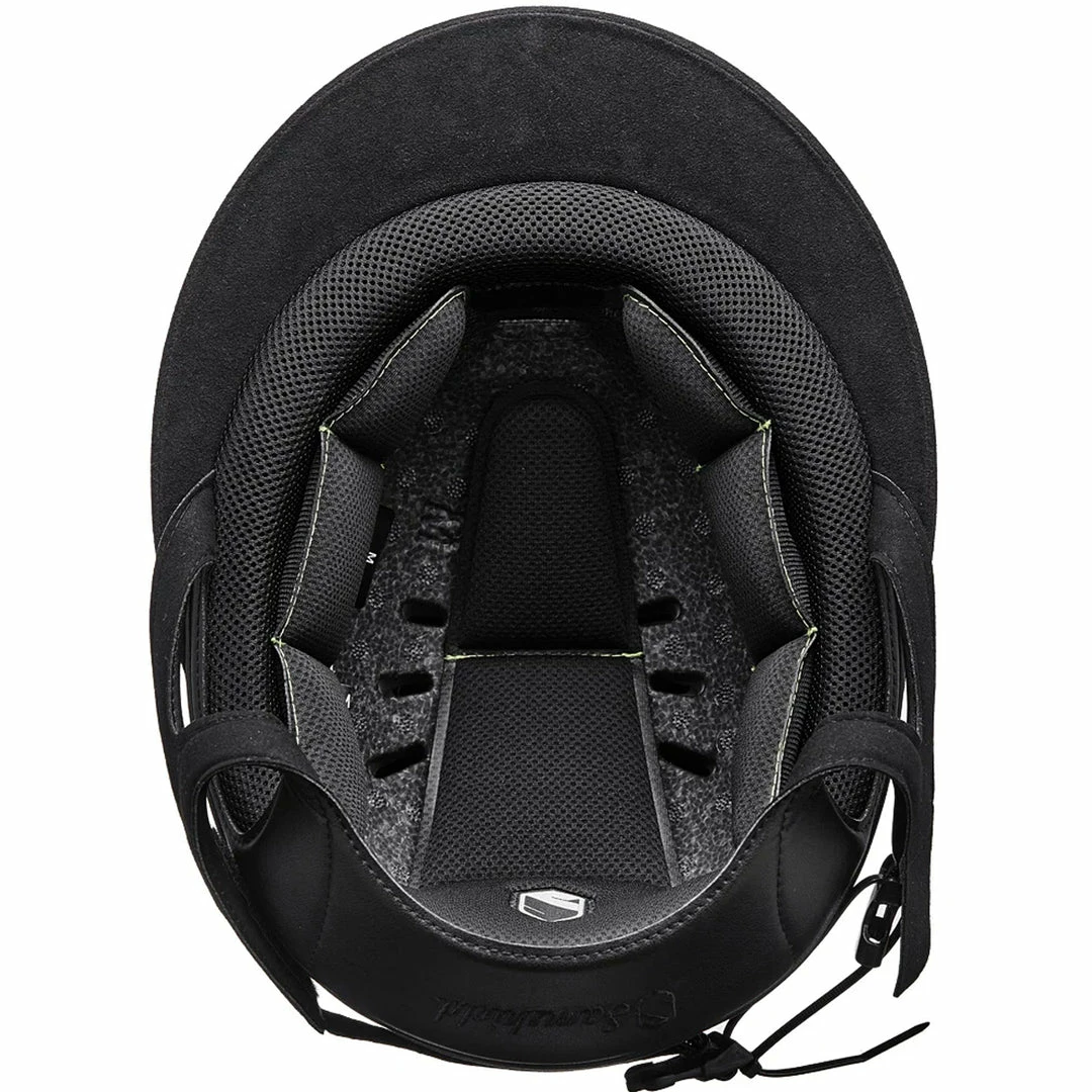 The Samshield Miss Shield Premium Alcantara Top Helmet offers a matching alcantara top material with a stylish frontal band above the visor. The extended visor is now longer and wider to help with protection from the sun. This new helmet combines the comfort, style and safety that all Samshield helmets offer into one beautiful equestrian riding helmet. This modern helmet has a streamlined look and a beautiful Alcantara top. The fabric will not fade in the sun and is water resistant.
