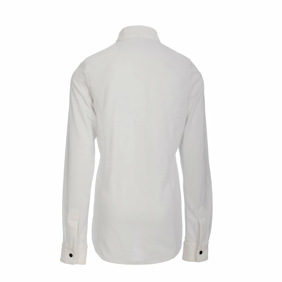 High-spec, technical girls competition shirt with Cleancool fabric; breathable/moisture-wicking, antibacterial finish, and cooling properties. Full-length zip fastening to the front, with simple snap fastening to competition collar. The luxury technical fabric provides a comfortable fit with high performance and is soft to the touch. Mesh detailing to the shoulders.