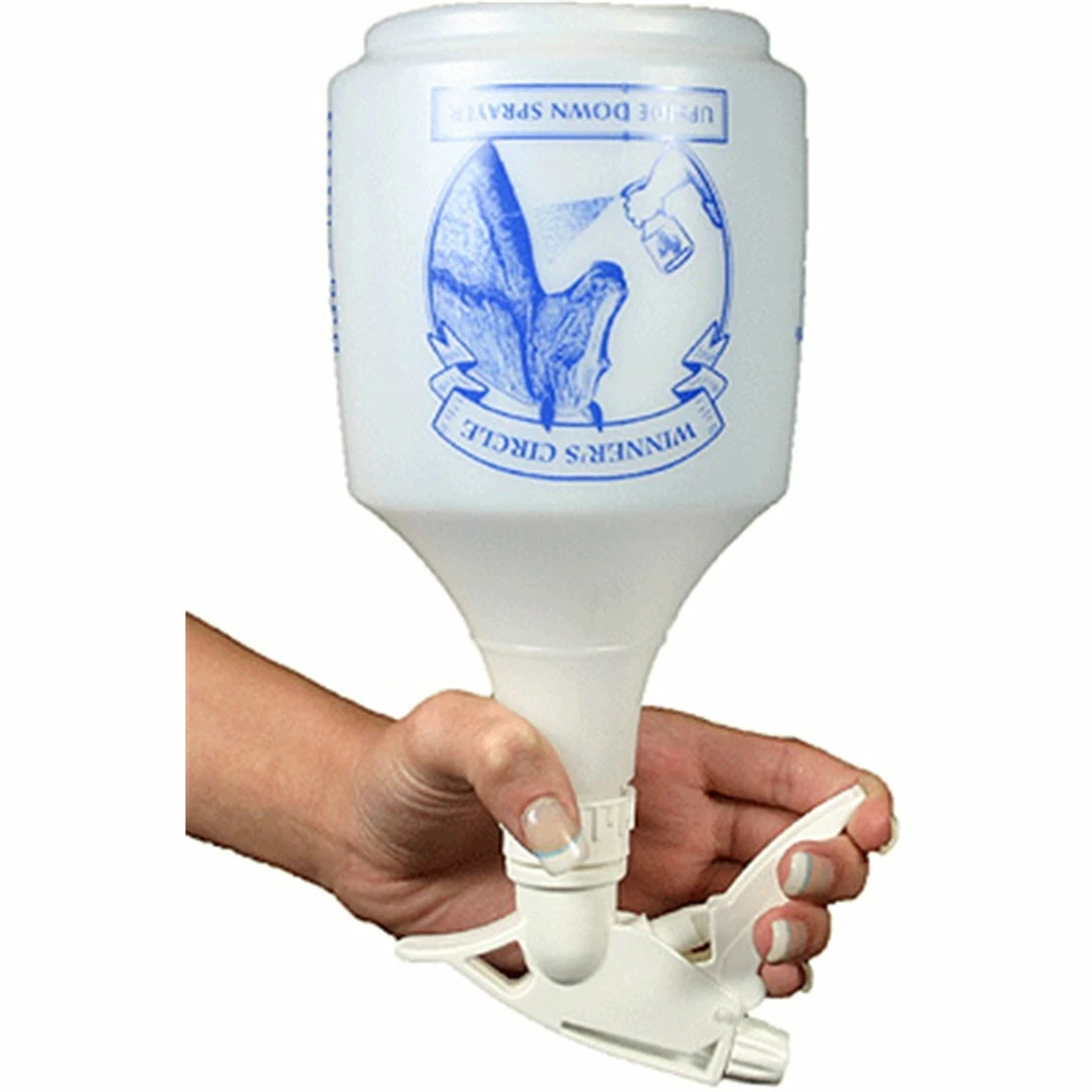 Upside Down Sprayer Bottle with “Winners Circle” imprint on the bottle can be used at any angle, even completely upside down. Perfect for those hard to reach areas and completely empties the spray bottle.