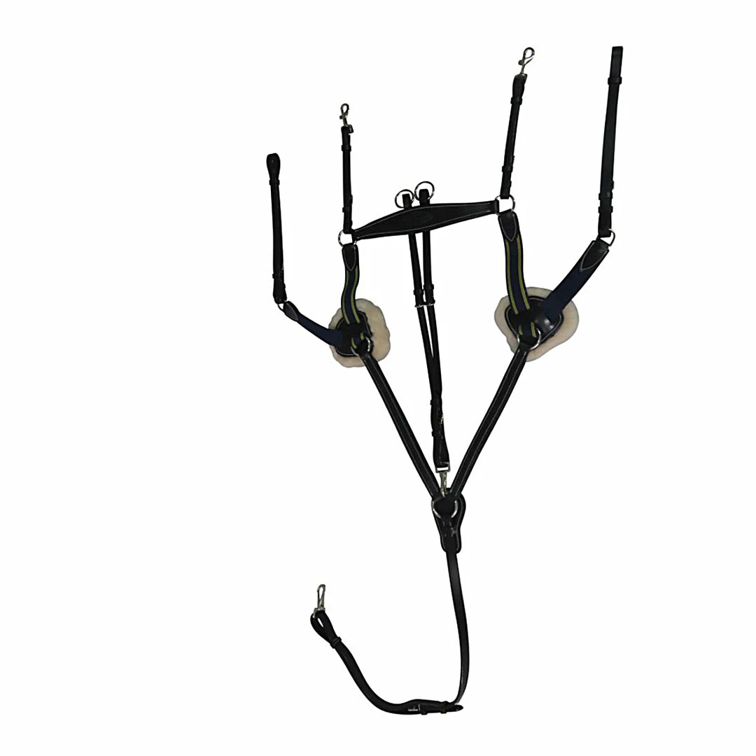 The Henri de Rivel Pro 5 Point Elastic Breastplate Martingale with Running Attachment allows freedom of movement in the shoulder while holding the saddle in place. The included running attachment encourages flexion at the poll while allowing freedom of movement. This martingale comes in several color options to match the rest of your tack. Removable fleece pads make for easy cleaning of sweat and dirt to inhibit mold and skin irritations. Our Henri De Rivel Pro 5 Point Elastic Breastplate Martingales with Running Attachment are part of the Henri de Rivel label offering you superior leather goods and superior performance at a superior price. HDR riding saddles and leather goods are expertly designed with unmatched craftsmanship and attention to detail.