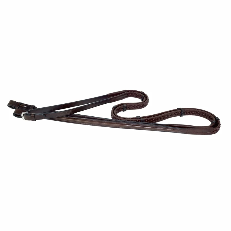 NEW!ย Our Best Selling Nunn Finer Soft Grip Rubber Reins now with Hand Stops! The ultimate โ our soft-grip rubber coupled with leather hand stops every four inches keeps reins right where you want them. Crafted with premium bridle leather in black or Havana. Quality durable rubber made to last under daily use and doesn’t melt. Hook and stud ends. Zinc hardware.
