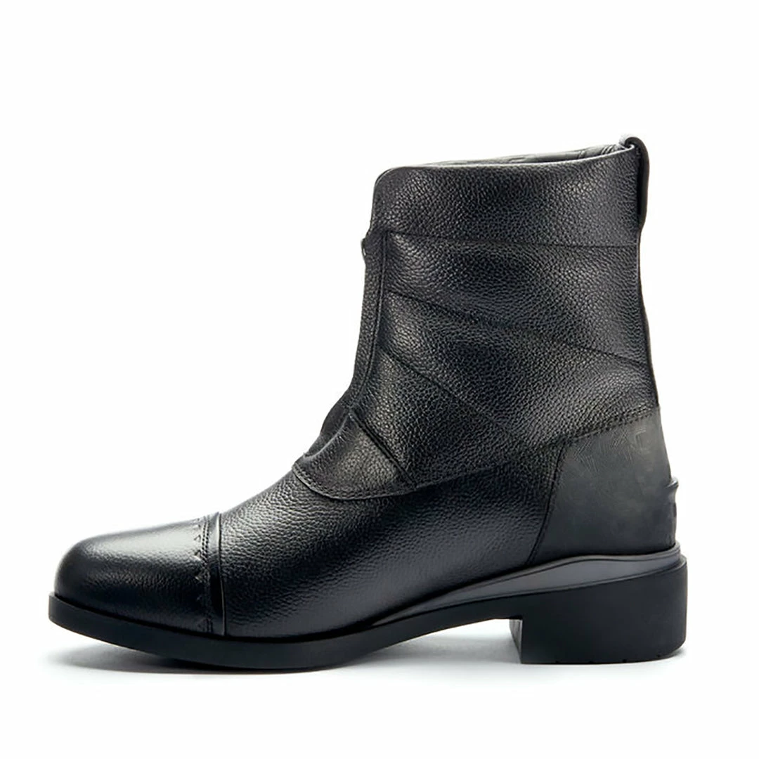 Snow? Ice?Β Mare that insists on a tromp through both to catch her? No problem. These boots keep feet warm, dry, and happy in the stirrups and on winter rounds all day long. RideWarm&Dryβ’ technology encapsulates feet for winter performance without the bulk. Seam-sealed waterproof leather uppers and internal waterproof membranes keep moisture out while an insulated lining keeps warmth in. A neoprene tongue backs the front zipper for additional water resistance. Abrasion-resistant, textured full-grain leather adds durability and style. OrangeZoneβ’ outsole gives riders full-traction confidence in the irons and on icy ground.