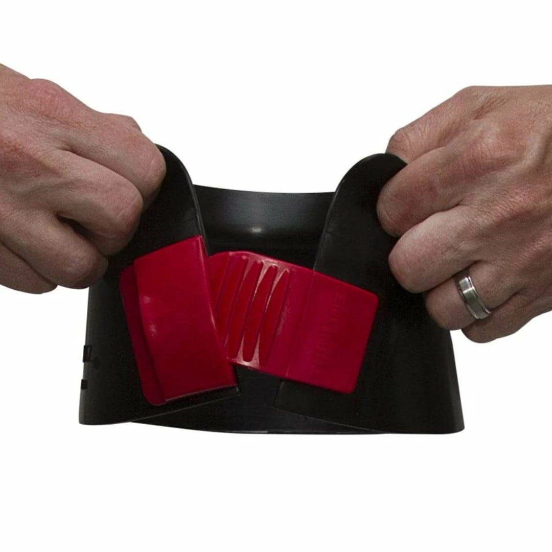 If your bell boot latch ever appears to be stuck, use the emergency release trick, simply place a hoof pick under the buckle, raise it up a bit, and then the strap will slide out.ย Note, not intended for daily use, only if you need to quickly release the latch.ย The latch is designed to break at the rivets behind the buckle should your horse manage to get the boot hung on something.ย Designed for longevity. The bell portion is made of the highest strength polymers (not found in any other bell boot). Designed primarily as a turnout boot. The patented neck and latch design allows this boot to fit without rubs. GatorBootz is the most durable bell boot on the market.