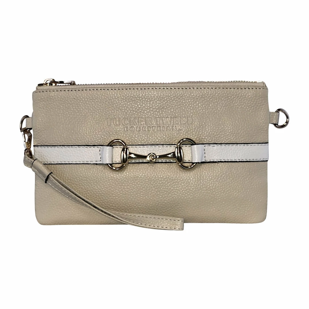 Equestrian meets convenience, in classic Tucker Tweed style. The Wellington Wristlet pays tribute to the 12 week annual Winter Equestrian Festival, a destination for the worldโs finest horses and riders. Complete in fine pebble-grain leather, this rider-requested style is available in 16 colors with solid or contrast color accents and snaffle bit detail. The wristlet interior is lined completely in signature red with leather accents, featuring 6 card pockets, bill pocket, private zipper pocket and room for the largest of cell phones. A removable wristlet strap can attach on the side, on the zipper, or remove for clutch carry. An adjustable shoulder strap is also provided for crossbody carrying option. Versatile, simple, equestrian luxury.