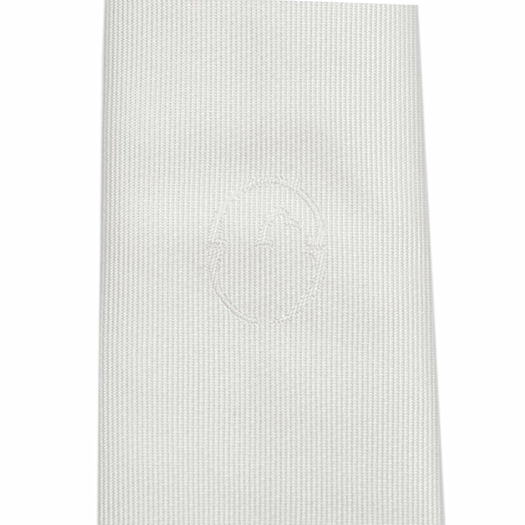 White polyester show tie with Vestrum logo.