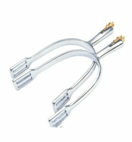 Brass Spurs with Brass Rowel that has small ridges.