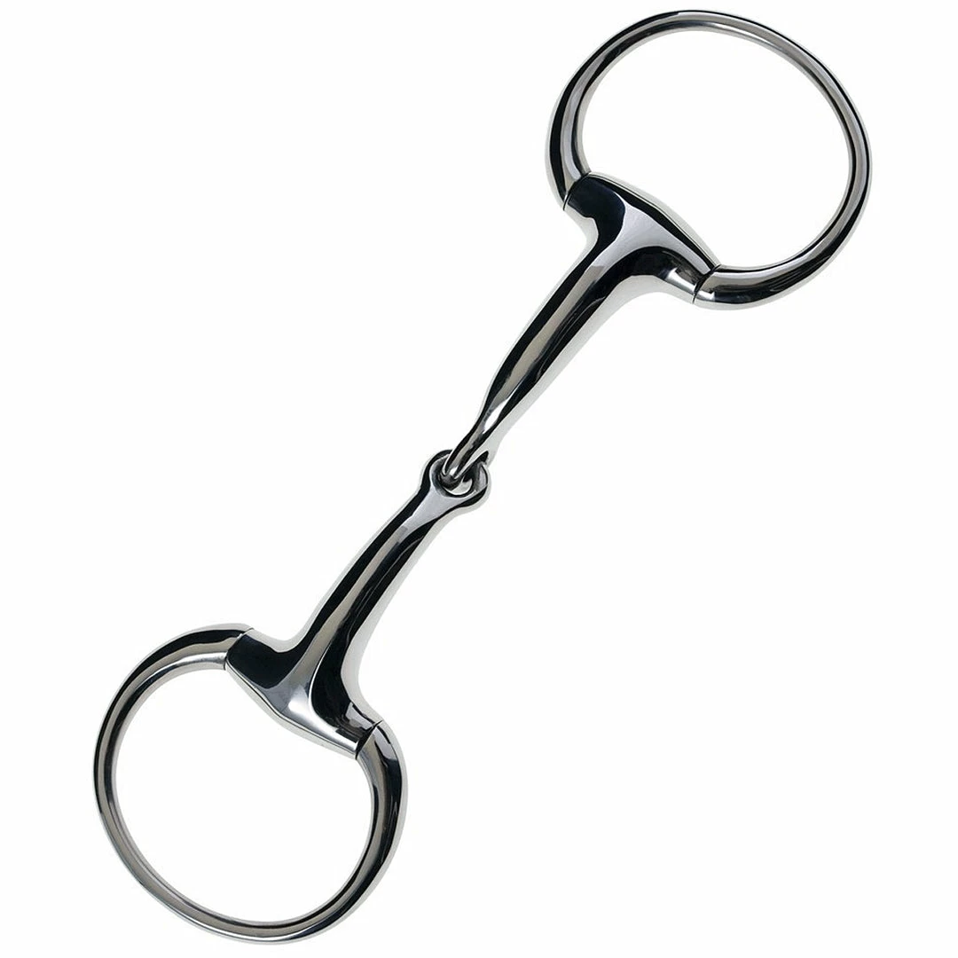 We love the JP Korsteel Stainless Steel Heavyweight 19mm Solid Eggbutt Snaffle bit because the heavyweight makes the bit quieter in your horse’s mouth. Great for horses that need constant contact. The Eggbutt helps with lateral stabilization and keeps the cheeks from getting pinched. The unique curved shape of the mouthpiece offers many advantages: